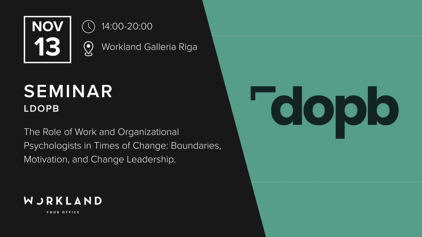 Latvijas Darba un organizāciju psihologu biedrība invite you to an engaging seminar exploring the role of the work and organizational psychologist in times of change. In one afternoon, you’ll gain insights, practical tools, and reflective exercises to better understand boundaries, motivation, and change management in modern organizations. Become a stronger professional and help your team thrive - even when things are shifting.